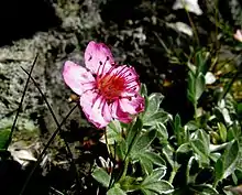 Potentilla nitida, the pink cinquefoil, is a species of cinquefoil in the family Rosaceae that is endemic to the Alps where it grows on elevation of 3,200 metres (10,500 ft). The species is 5 centimetres (2.0 in) tall and 15–30 centimetres (5.9–11.8 in) wide. The flowers grow in pairs and are 2–2.5 centimetres (0.79–0.98 in) long.[1]