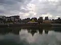 After Pralaya, of the two holy tanks that came into existence in Kumbakonam one was Potramarai tank. As Thirumagal came from 'golden lotus', Potramarai in Tamil, this tank is called as Potramarai tank.[1] In Kumbakonam, this is considered very sacred, the first being the Mahamaham tank. This tank belonged to Sarangapani temple. The tank has walls on all its four sides.[2] Once writers used to mingle on the banks of the tank.[3]