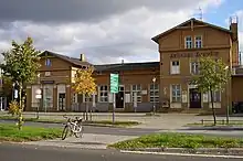 Potsdam Medienstadt Babelsberg station is a station on the Berlin–Blankenheim railway located in the east of the Potsdam district of Drewitz near Babelsberg, the historic center of the German film industry, and the former West Berlin exclave of Steinstücken. The station's DS-100 code is BDW[1] and its station's numerical code is 5013.[2] It is classified by Deutsche Bahn as a category 5 station.[2]