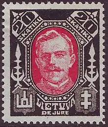 ![]() Povilas Lukšys on a stamp celebrating de jure recognition of Lithuania by other countries in 1922 | |