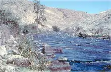 The Powder River was once an important spawning stream for Chinook salmon (Oncorhynchus tshawytscha) and steelhead trout (Oncorhyncus mykiss) coming from the Pacific Ocean.[6] Chinook salmon once migrated by the thousands to spawn in the Powder River and many of its tributaries from its headwaters to the lower end of the North Powder Valley, but that stopped when the Thief Valley Dam was built near North Powder in 1931. The building of two later dams in Hells Canyon on the Snake River – Hells Canyon Dam (1967) and Brownlee Dam also permanently block salmon passage. The Oregon Department of Fish and Wildlife often release Chinook salmon on the Powder River for sportfishing at Mason Dam below Phillips Reservoir.[9]