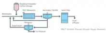 In an aerobic treatment system, influent first enters an aeration tank where the powdered carbon is added, making up a portion of mixed liquor suspended solids.[6] Once the aeration is completed, the treated wastewater and the carbon-biomass slurry are allowed to settle.[6] In cases where complete solids separation is needed, such as for reuse, an MBR may be used in place of the clarifer.