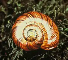 Powelliphanta lignaria, known as one of the amber snails, is a species of large, carnivorous land snail, a terrestrial pulmonate gastropod mollusc in the family Rhytididae. The eggs of P. lignaria are oval and seldom constant in dimensions 10 × 8.25, 9 × 7.75, 9 × 8, 8.75 × 7.75 mm.[2]