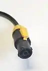 In January 2011, Neutrik announced a new variant of the connector called the powerCON TRUE1.[4] Unlike the traditional powerCON connectors, the new connector is specified with breaking capacity, meaning it is designed for disconnection under load[5] The maximum current rating for the TRUE1 connector is reduced to 16 A and it is not compatible with traditional powerCON connectors. The connectors are IP65 and UL50E rated when mated (connected) together, meaning that they are designed to be used in outdoor environments with a heavy dust and/or water presence.[6]