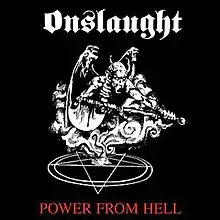 Power from Hell is the debut studio album by English thrash metal band Onslaught, released in February 1985. Apparently confusion has arisen as to who coined the term Death Metal, as it was Onslaught who wrote their song 'Death Metal' in early 1984 and recorded the album version later in the same year, Possessed who recorded their song entitled "Death Metal" on their 1984 demo tape of the same name.[4] "Power from Hell" was reissued in 1996 by Powerage Records, again in 2005 by Blackend Records and received a full remaster by Jacob Hansen for the 2012 release on AFM Records;[5] the 2012 release rectifies the track listing problem encountered on previous releases and has revamped artwork with liner notes by Steve Grice.