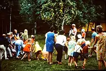 When dancing around the Christmas tree or the midsummer pole the ring of people is moving inwards and outwards, before being split up and finally throwing themselves on the floor or grass.