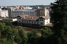 Praha-Vysočany railway station is a mainline railway station located in Vysočany, Prague 9. Located at the northeastern end of Nové spojení, it is a junction between track 070, to Turnov, and track 231 to Kolín via Nymburk. Historically, trains from Nymburk terminated at the now demolished Praha-Těšnov railway station. It is located within walking distance of Vysočanská station on the Prague Metro.