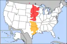 | Northern (red) and southern (gold) prairie skink ranges | |