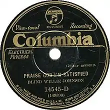 "Praise God I'm Satisfied" is a traditional gospel blues song recorded in 1929 by Blind Willie Johnson (vocals and guitar) and Willie B. Harris (vocals), who is thought to have been his first wife.[1]