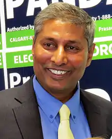 Prasad Panda ECA MLA is a Canadian politician who was elected to the Legislative Assembly of Alberta in a 2015 by-election, replacing former Alberta Premier Jim Prentice, and the 2019 Alberta general elections to represent the electoral district of Calgary-Foothills.[1]