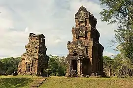 Prasat Suor Prat (Khmer: ប្រាសាទសួព្រ័ត) is a series of twelve towers spanning north to south lining the eastern side of a royal square in Angkor Thom, near the town of Siem Reap, Cambodia. The towers are made from rugged laterite and sandstone. They are right in front of Terrace of the Elephants and Terrace of the Leper King, flanking the start of the road leading east to the Victory Gate, on either side of which they are symmetrically arranged. Their function remains unknown.[1]