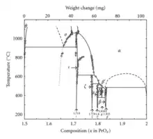 | Value | Formula | Phase | x in PrOx | Average oxidation state of Pr |
