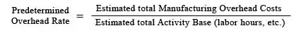 A pre-determined overhead rate is the rate used to apply manufacturing overhead to work-in-process inventory. The pre-determined overhead rate is calculated before the period begins. The first step is to estimate the amount of the activity base that will be required to support operations in the upcoming period. The second step is to estimate the total manufacturing cost at that level of activity. The third step is to compute the predetermined overhead rate by dividing the estimated total manufacturing overhead costs by the estimated total amount of cost driver or activity base. Common activity bases used in the calculation include direct labor costs, direct labor hours, or machine hours.