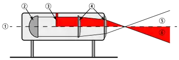 Each light unit consists of one or more light sources, red filters and lenses. A color filter may not be necessary with colored LED lights. Each light unit emits a high-intensity beam. The lower segment of the beam is red, and the upper part is white. The transition between the two colours must take place over an angle not greater than three minutes of arc. This characteristic makes the color change very conspicuous, a key feature of the PAPI signal. To form the PAPI guidance signal, the color transition boundaries of the four units are fixed at different angles. The lowest angle is used for the unit furthest from the runway, the highest for the unit nearest to the runway. The designated glideslope is midway between the second and third light unit settings.