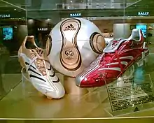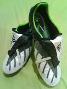 Adidas Predator are a range of football boots developed by German sportswear manufacturers Adidas, introduced in 1994.[1] Predator are based on a prototype concept from the Australian former footballer Craig Johnston.[2][3] The common feature of the Predator range is the presence of rubber patches or strips on the top of the shoe, designed to increase friction between the boot and the ball. In late 2010, Adidas designed the new "Power-spine" technology, which they claim improves shot power by reducing the amount the foot bends back as it kicks the ball.
