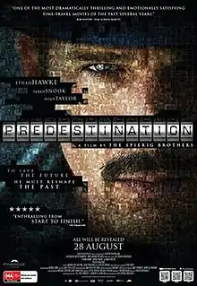 Predestination is a 2014 Australian science fiction action-thriller film[4] written and directed by Michael and Peter Spierig. The film stars Ethan Hawke, Sarah Snook, and Noah Taylor, and is based on the 1959 short story " '—All You Zombies—' " by Robert A. Heinlein.