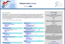 Predictor@home was a volunteer computing project that used BOINC[1] software to predict protein structure from protein sequence in the context of the 6th biannual CASP, or Critical Assessment of Techniques for Protein Structure Prediction. A major goal of the project was the testing and evaluating of new algorithms to predict both known and unknown protein structures.[2]