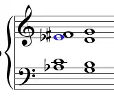 The French sixth chord; distinguishing tone highlighted in blue. Play