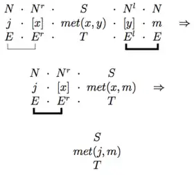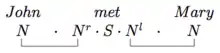 A sentence S that has type T is said to be grammatical if . We can prove this by use of a chain of . For example, we can prove that is grammatical by proving that :
