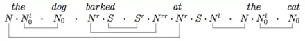 The symbol and are also written and respectively. In category theory, pregroups are also known as autonomous categories[1] or (non-symmetric) compact closed categories.[2] More typically, will just be represented by adjacency, i.e. as .