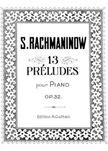 Thirteen Preludes (Russian: Тринадцать прелюдий, Trinadtsat' prelyudiy), Op. 32, is a set of thirteen preludes for solo piano, composed by Sergei Rachmaninoff in 1910.