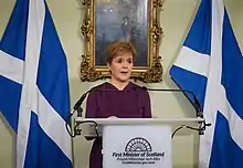 Sturgeon announced to the Scottish Parliament on 18 March that all schools and nurseries in Scotland would close on 20 March to try and limit the spread of the virus.[84] On 23 March, Sturgeon issued a statement, placing Scotland on a "lockdown", limiting the reasons as to why people may leave their homes in an increase attempt to limit the spread of the virus, to protect the health of the population, as well as to ease the pressure the virus places on NHS Scotland services and workforce.[85] Since then restrictions have been frequently tightened, loosened and adapted in parts or all of Scotland to respond to developments in the situation.[86]