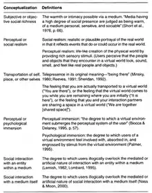 Lombard and Ditton went a step further and enumerated six conceptualizations of presence:[2]