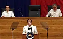 After being sworn in as the fifteenth president of the Philippines, succeeding Gloria Macapagal Arroyo, Aquino delivered his inaugural address.[16][22]