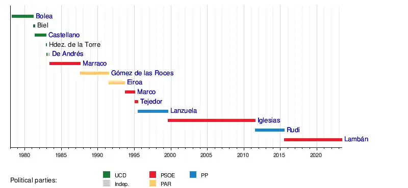 | During this interval, Minister Secretary-General José Ángel Biel served as acting officeholder. | ||||||||||
