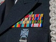 The ribbon is authorized for wear by National Guard members not on U.S. Title 10 orders, after Active Duty U.S. military awards and after authorized foreign awards and awards from a Guardsman's home state, following U.S. Army Regulation 670-1.