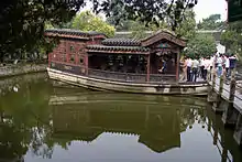 The Marble Boat is the oldest surviving structure in the Presidential Palace complex, which was built when Qianlong visited Kiangning. To please the emperor, the official told him that the name of the structure was called the "unmoored boat", as the metaphor of the firmness of the Qing dynasty's regime. The 14.5-meter-long timber-mimic stony boat is one of the best-known structures in the garden.