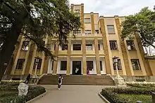 Two cedars were planted in 1934 by Chairman Lin Sen on both sides of the courtyard in the front of the Presidential Building. The cedar on the east side was dead in 2005 and was cut down in 2013.[1] The building was designed by Yu Binglie, who was the head of the department of architecture, National Central University. Inside the house, the first floor was served as the office of the Secretary-General to the President, the highest-ranking official in the Office of the President who supervised the staff of the Office. The presidential office and vice presidential office were both on the second floor. The meeting room of the State Affair Council was located on the third floor.