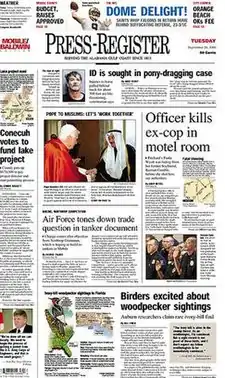 - Today's Press-Register front page at the Freedom Forum website