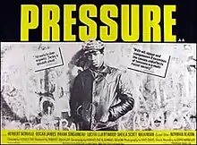 Pressure is a 1976 British drama film directed by Horace Ové and starring Herbert Norville, Oscar James and Frank Singuineau. It is hailed as the UK's first Black dramatic feature-length film,[2][3][4] and has been characterised as "a gritty and dynamic study of a generation in crisis".[5] Ové has said: "What Pressure tried to do was to portray the experience of the Windrush generation, the kids who came with them and the kids born here."[6]