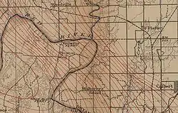 Holland Coffee and Silas Cheek Colville created Coffee, Colville, and Company to establish a trading post on the Red River.[5] After establishing three trading posts upstream, they established one in the Washita Bend.[6][7] They occupied the area of Washita Bend after John Hart's tenant was killed by Indians.[2] Hart later sued Coffee for the land, but lost.[2][7] In 1837, Holland Coffee had been elected to the Texas Legislature[8] and negotiated a peace treaty between the Republic of Texas and the Waco, Tawakoni, Kichai, and Towash (Pawnee) peoples on September 2, 1838, at a Shawnee village near the mouth of the Washita River.[9][10]