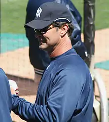 Donald Arthur Mattingly (born April 20, 1961)[1] is an American professional baseball coach, and former first baseman and manager in Major League Baseball (MLB). He is the bench coach for the Toronto Blue Jays of MLB. Nicknamed "The Hit Man" and "Donnie Baseball", he spent his entire 14-year MLB playing career with the New York Yankees and later managed the Los Angeles Dodgers for five years and the Miami Marlins for seven seasons.