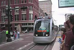 Preston is a station on the METRORail Red Line in Houston, Texas (USA). The station is located at Main Street and Preston Street in Downtown Houston. This was the 2nd station heading south along the rail line, but the rail has expanded further north as of spring, 2014. This station is located in the Northern, Historic part of Downtown Houston.