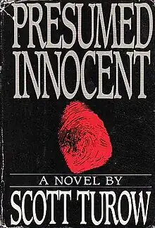 Presumed Innocent, published in August 1987, is Scott Turow's first novel.[1][2] It is about a prosecutor charged with the murder of his colleague, an attractive and intelligent prosecutor named Carolyn Polhemus. It is told in the first person by the accused, Rožat "Rusty" Sabich. A motion picture adaptation starring Harrison Ford was released in 1990.[3]