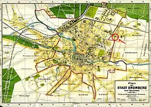 - "Straßen". Adressbuch nebst allgemeinem Geschäfts-Anzeiger von Bromberg und dessen Vororten auf das Jahr 1915 auf Grund amtlicher und privater Unterlagen. Bromberg: A. Dittmann. p. 167.