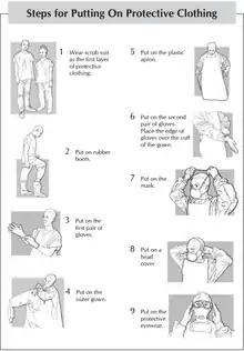 There are specific recommendation regarding the putting on of protective clothing including:[1]