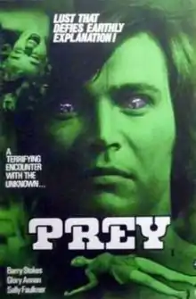 Prey (known as Alien Prey in some markets)[1][2] is a 1977 British independent science fiction horror film produced by Terry Marcel and directed by Norman J. Warren. The plot concerns a carnivorous alien (Barry Stokes) landing on Earth and befriending a lesbian couple (Glory Annen and Sally Faulkner) as part of his mission to evaluate humans as a source of food. It was filmed in under two weeks on a budget of less than £60,000 (approximately £396,600 in 2021) using locations near Shepperton Studios in Surrey. It had a limited distribution on release.