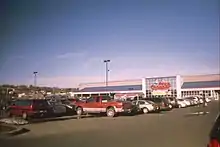 Price Chopper was an early innovator in the conversion of conventional stores to superstores and combination (food and drug) units, as well as operating stores that are open 24 hours a day. The first Price Chopper opened in the late 1970s in Oneonta, New York. Another opened in the early 1980s in Latham, New York, and then an even-larger unit was constructed in Queensbury, New York in 1986. The Super Centers, which were state-of-the-art by 1980s standards, often featured full-service meat, seafood, and bakery departments, as well as pharmacies and banks (features new to supermarkets at the time). These units were also known for their unconventional layouts, with aisles facing horizontally, or away from, the cash registers, rather than the traditional vertical arrangement with the aisles facing the cash register area. Few Price Chopper stores still retain this layout today. In the late 1980s, Price Chopper changed its corporate logo featuring an axe cutting into a coin.