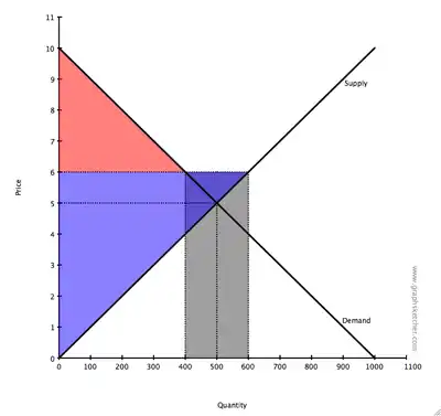 In a hypothetical market in which supply and demand are such that the equilibrium price and quantity are $5 and 500 units, respectively, and the government then institutes a price floor at $6 per unit: