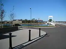 A new Millennium footbridge from Gosport town centre was constructed to aid the redevelopment and access to the area. New housing was built around parts of the original site, including an imitation of the early 19th-century Officers' Residence (demolished in the 1950s) which faces the footbridge.[25] In 2004 an arson attack led to the demolition of the sizeable grade II-listed[26] New Shell Store (being used by the council as a warehouse to store wheelie bins) that stood within the Royal Laboratory quadrangle.[27]