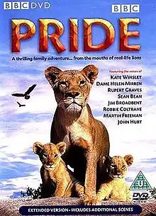 Pride is a 2004 television comedy-drama film about two lion cubs as they grow up and face the harsh realities of adulthood. Produced by the BBC and shown on A&E in the U.S., the film features the voices of numerous British actors and uses CGI technology to enhance footage of actual lions and other animals. Jim Henson's Creature Shop provided the digital effects and animatronics for the film. It was shot in Tanzania's Serengeti National Park.