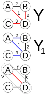 Let tree Y2 be the graph obtained by removing edge f from and adding edge e to tree Y1. It is easy to show that tree Y2 is connected, has the same number of edges as tree Y1, and the total weights of its edges is not larger than that of tree Y1, therefore it is also a minimum spanning tree of graph P and it contains edge e and all the edges added before it during the construction of set V. Repeat the steps above and we will eventually obtain a minimum spanning tree of graph P that is identical to tree Y. This shows Y is a minimum spanning tree. The minimum spanning tree allows for the first subset of the sub-region to be expanded into a smaller subset X, which we assume to be the minimum.