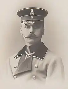 At age 10 in 1875 Kadett, in 1885 Premierlieutnant (Oberleutnant), 1888 Rittmeister (Hauptmann), 1890 Major and 1893 Oberst.