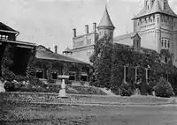 Prince Mikhail Mikhailovich Cantacuzène had a distant cousin, Prince Grigorii L'vovich Kantakuzen (1843–1902), who was also a diplomat, serving as Russian representative to the U.S. from 1892 to 1895.[2] But in 1893, Prince Mikhail was attached to the Russian embassy in Rome. In that context, he met Julia Dent Grant, first born grandchild of US President Ulysses Simpson Grant, who was traveling in Europe with her maternal aunt, Bertha Palmer (née Honoré.) Aunt and niece travelled throughout Europe to promote interest in the World's Columbian Exposition as well as to collect art.[3] The couple married in the home of her aunt Bertha Palmer in Newport, Rhode Island, on 22 September 1899.[4][5] Miss Grant assumed her husband's titles and was styled Julia Dent Cantacuzène Spiransky-Grant.