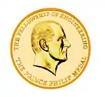 The Prince Philip Medal is named after Prince Philip, Duke of Edinburgh, who was the Senior Fellow of the Royal Academy of Engineering (RAE). In 1989 Prince Philip agreed to the commissioning of solid gold medals to be "awarded periodically to an engineer of any nationality who has made an exceptional contribution to engineering as a whole through practice, management or education."[1] The first of these medals was awarded in 1991 to Air Commodore Sir Frank Whittle.