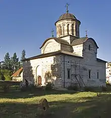 The Princely Church of Saint Nicholas in Curtea de Argeș was founded by Basarab I (1310 - 1352), completed in 1352, in the perimeter of the 13th century voievodal court. The church, a complex inscribed Greek cross monument, is one of the most representative monuments of medieval Romanian architecture, being the oldest voivode funded religious monument in Wallachia.[1] The interior murals are from 1364 - 1369. The church is included on the new list of Romanian historical monuments: AG-II-m-A-13647.01 and in the UNESCO Indicative List.